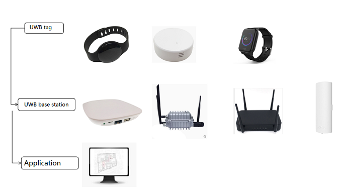 It mainly includes: UWB tag, UWB base station, wireless AP, POE switch, positioning engine server, intelligent terminal, etc.