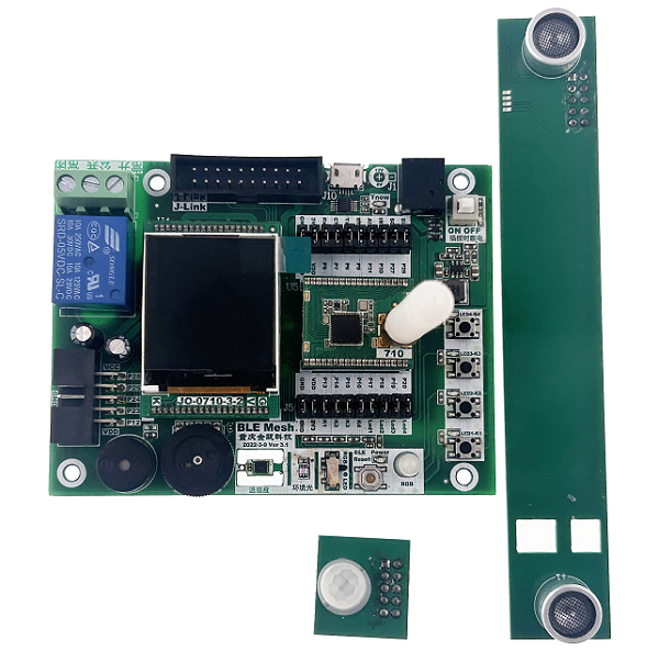 The development board consists of five parts: baseboard (JO-0710-3-1), LCD module (JO-0710-3-2), BLE module (JO-0710-1-2), infrared module (JO-0710-3-3) and ultrasonic module (JO-0710-3-4).